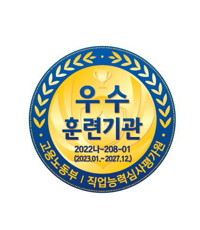 우수훈련기관으로 선정되어 5년 인증을 받았습니다.