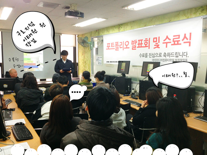구로 캠퍼스 [수료식] 인테리어전문가 23기 작품발표회 및 수료식 Post. 2012.03.28 1. 개회식 2. 포트롤리오 발표회 3. 취업지원 및 사후관리 안내특강 4. 수료식 및 수료증 전달 5. 기념촬영 6. 다과회