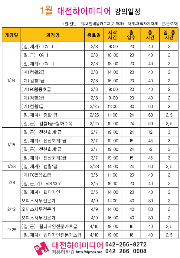 [정규개강]2013년 1월 개강일정입니다.(대전캠퍼스)