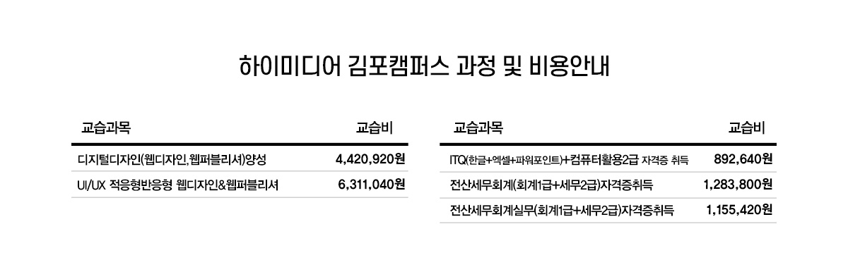 2019 김포캠퍼스 교습비게시표