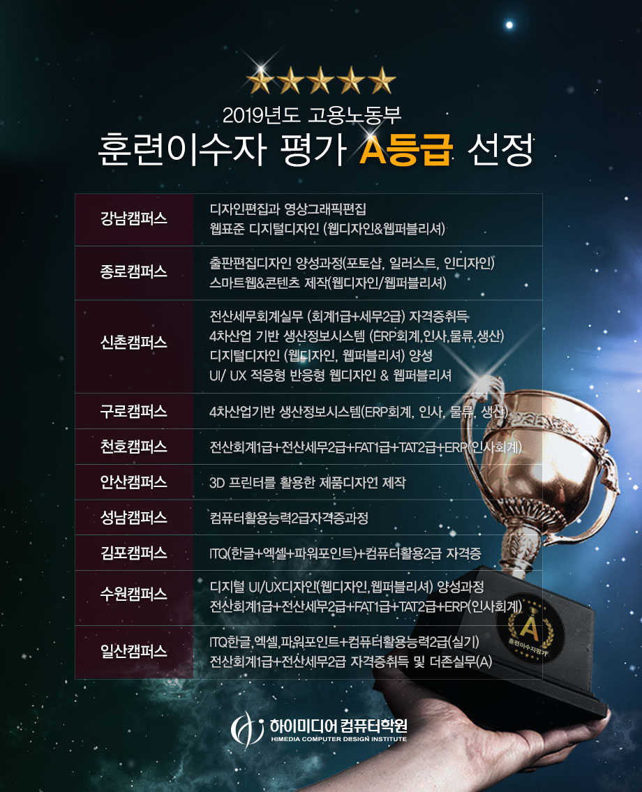 2019년 고용노동부 훈련 이수자 평가 A등급 선정